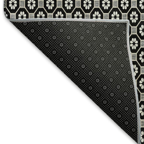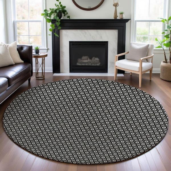 Mayfield Premium Machine Washable Abstract AMF1428 Black 8 ft. x 8 ft. Round Rug