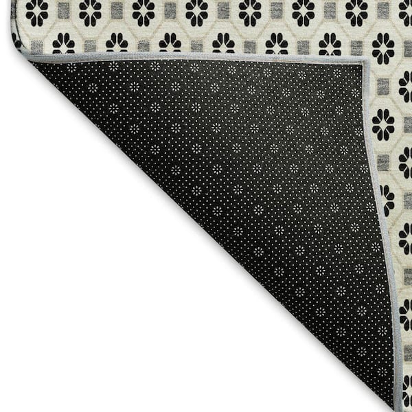 Mayfield Premium Machine Washable Abstract AMF1428 Ivory 8 ft. x 8 ft. Round Rug