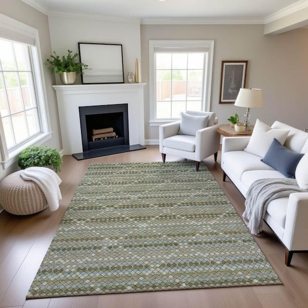 Mayfield Premium Machine Washable Abstract AMF1436 Aloe 9 ft. x 12 ft. Area Rug