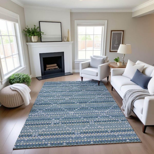 Mayfield Premium Machine Washable Abstract AMF1436 Denim 10 ft. x 14 ft. Area Rug