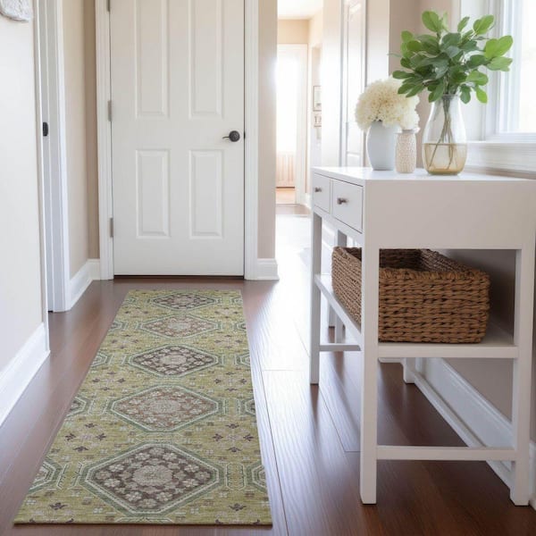 Mayfield Premium Machine Washable Abstract AMF1442 Aloe 2 ft. 3 in. x 7 ft. 6 in. Runner Rug