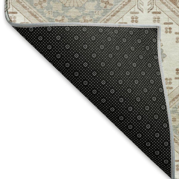 Mayfield Premium Machine Washable Abstract AMF1442 Ivory 8 ft. x 8 ft. Round Rug
