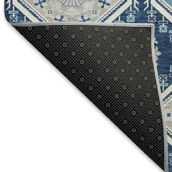 Mayfield Premium Machine Washable Abstract AMF1442 Navy 8 ft. x 8 ft. Round Rug
