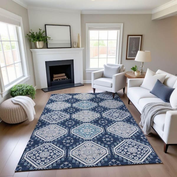 Mayfield Premium Machine Washable Abstract AMF1442 Navy 9 ft. x 12 ft. Area Rug