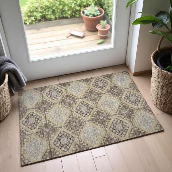 Mayfield Premium Machine Washable Abstract AMF1442 Taupe 2 ft. x 3 ft. Area Rug