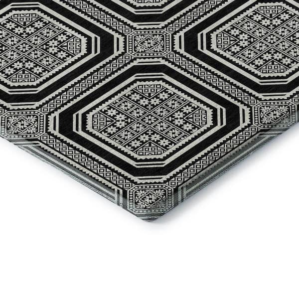 Mayfield Premium Machine Washable Abstract AMF1451 Black 2 ft. x 3 ft. Area Rug