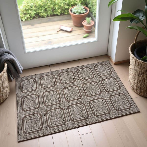 Mayfield Premium Machine Washable Abstract AMF1451 Brown 2 ft. x 3 ft. Area Rug