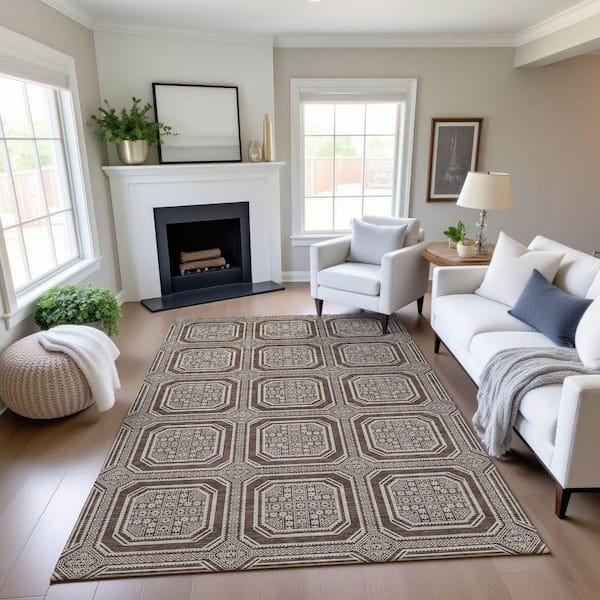 Mayfield Premium Machine Washable Abstract AMF1451 Brown 3 ft. x 5 ft. Area Rug