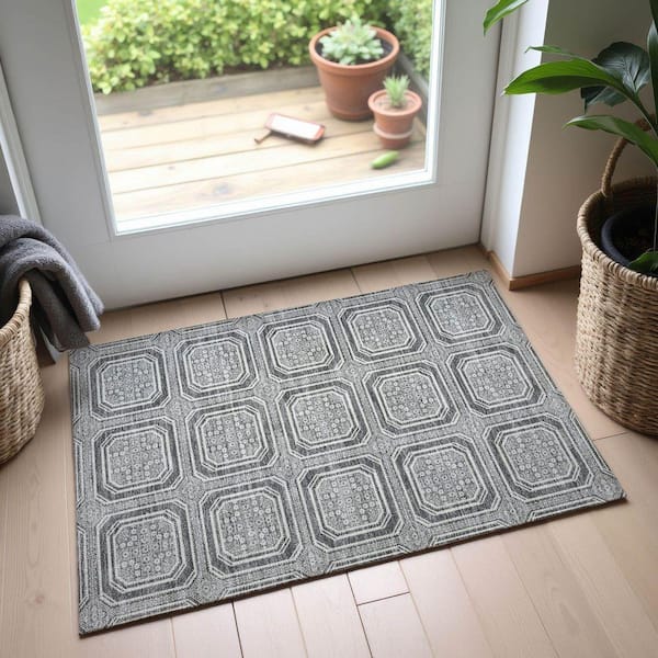 Mayfield Premium Machine Washable Abstract AMF1451 Gray 2 ft. x 3 ft. Area Rug