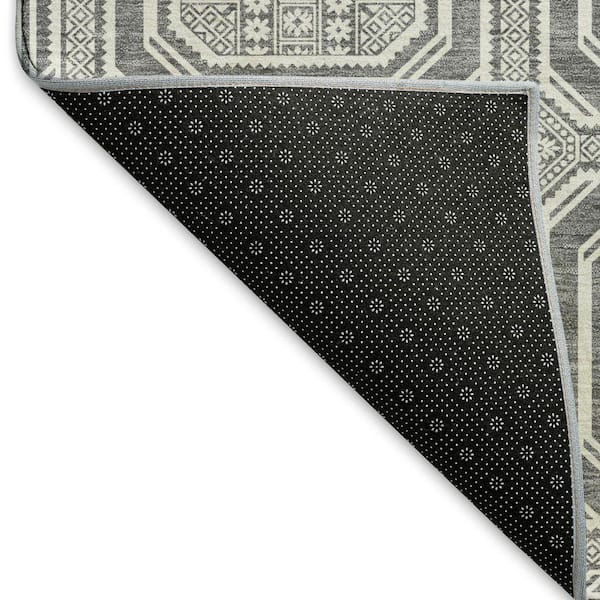Mayfield Premium Machine Washable Abstract AMF1451 Gray 8 ft. x 8 ft. Round Rug