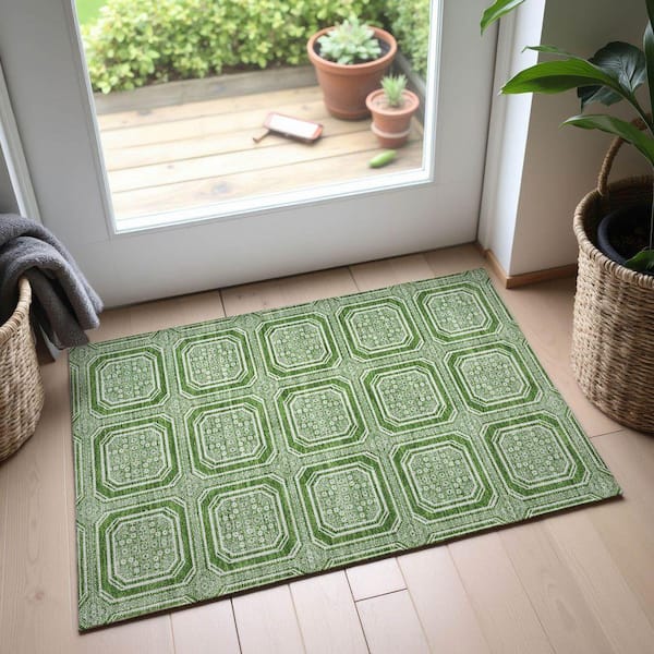 Mayfield Premium Machine Washable Abstract AMF1451 Green 2 ft. x 3 ft. Area Rug