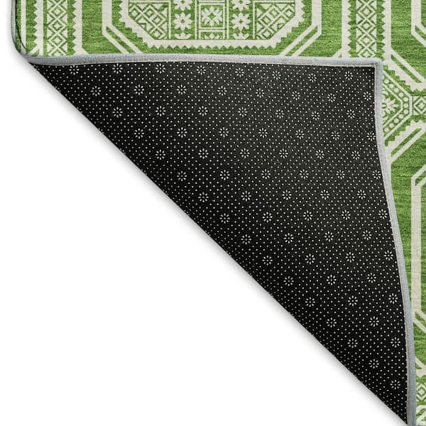 Mayfield Premium Machine Washable Abstract AMF1451 Green 8 ft. x 8 ft. Round Rug