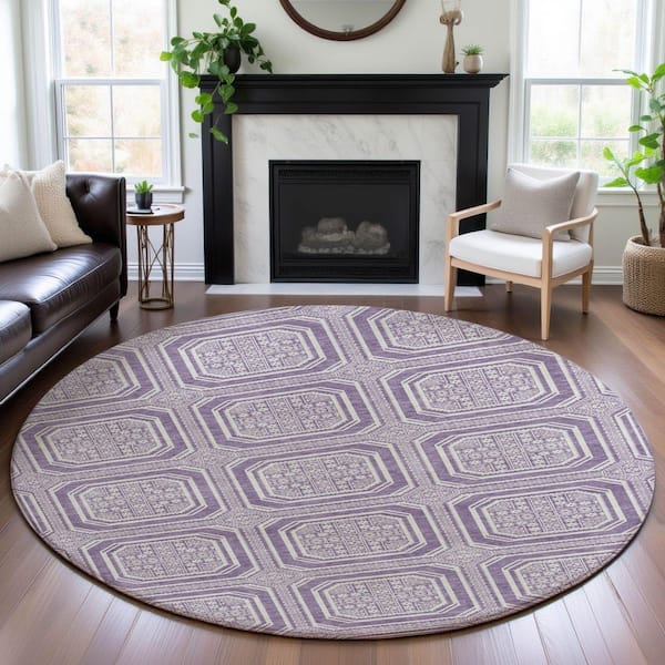 Mayfield Premium Machine Washable Abstract AMF1451 Lavender 8 ft. x 8 ft. Round Rug