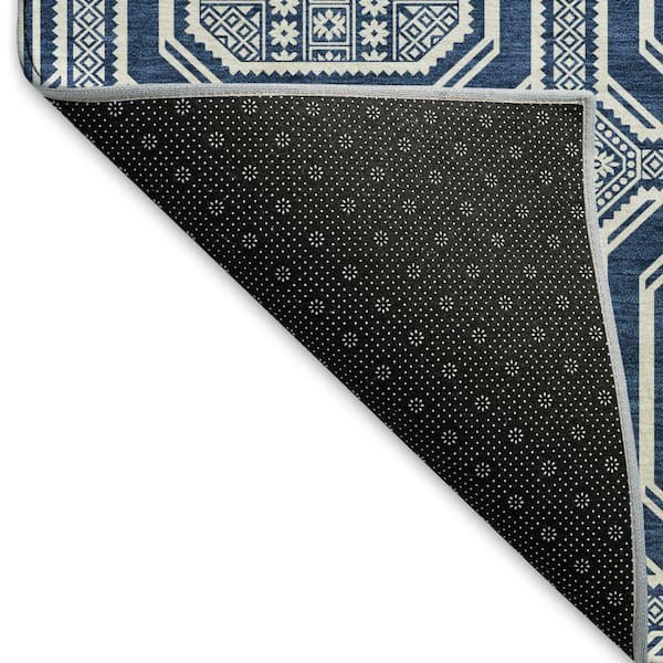 Mayfield Premium Machine Washable Abstract AMF1451 Navy 8 ft. x 8 ft. Round Rug