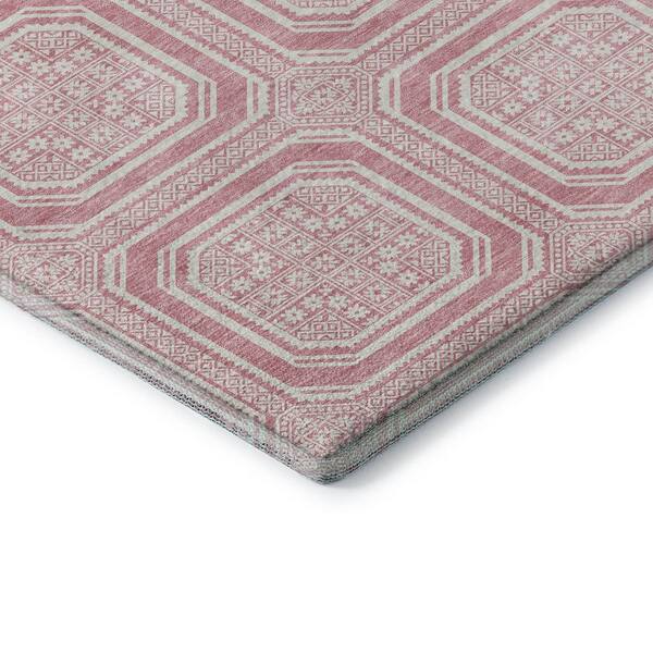 Mayfield Premium Machine Washable Abstract AMF1451 Pink 3 ft. x 5 ft. Area Rug