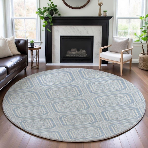 Mayfield Premium Machine Washable Abstract AMF1451 Sky 8 ft. x 8 ft. Round Rug