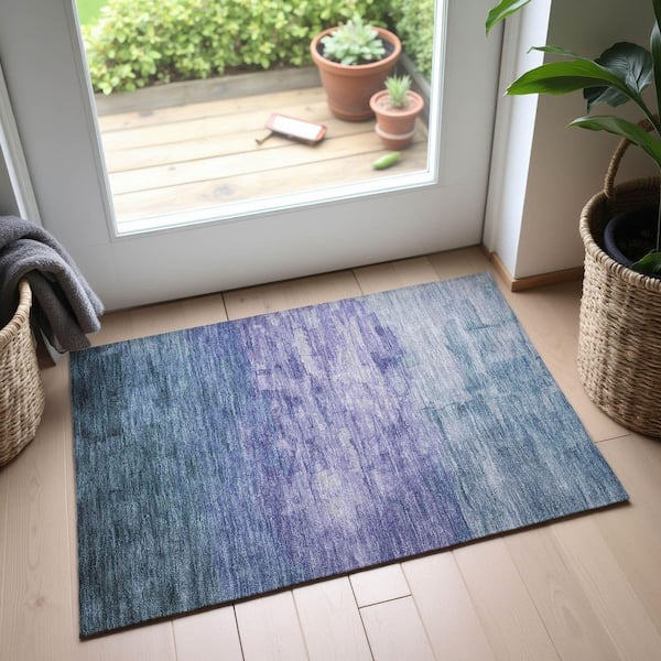 Mayfield Premium Machine Washable Abstract AMF1465 Denim 2 ft. x 3 ft. Area Rug