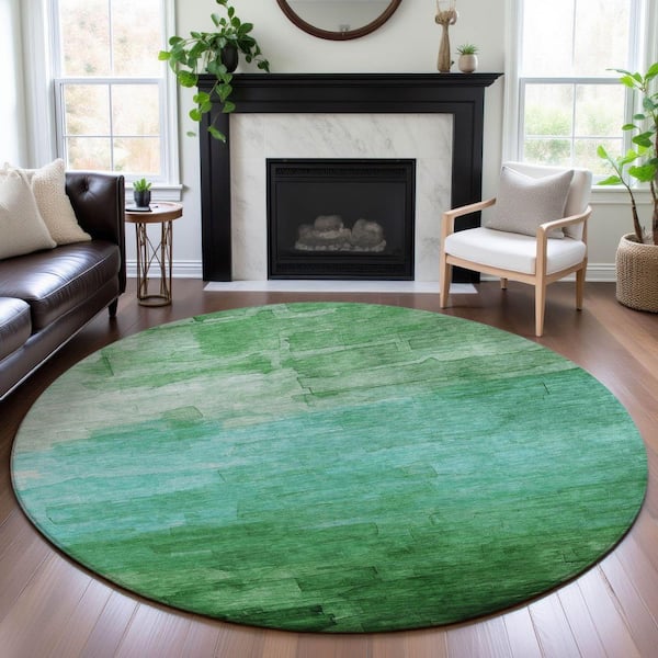 Mayfield Premium Machine Washable Abstract AMF1465 Green 8 ft. x 8 ft. Round Rug