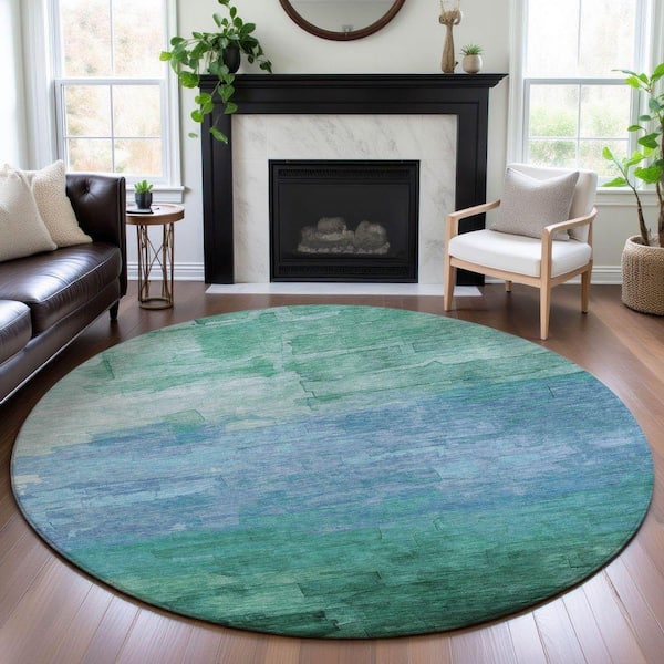 Mayfield Premium Machine Washable Abstract AMF1465 Teal 8 ft. x 8 ft. Round Rug