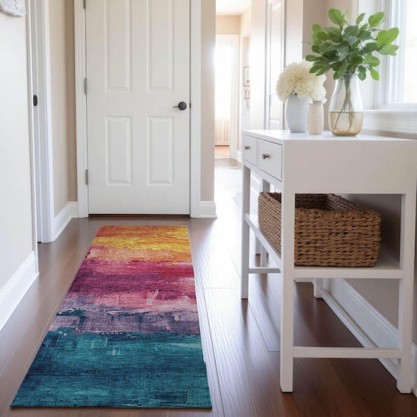 Mayfield Premium Machine Washable Abstract AMF1473 Merlot 2 ft. 3 in. x 7 ft. 6 in. Runner Rug