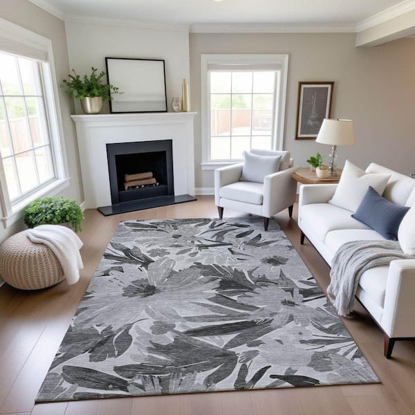 Mayfield Premium Machine Washable Abstract AMF1481 Gray 8 ft. x 10 ft. Area Rug