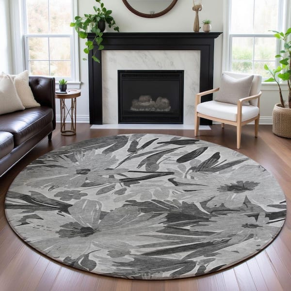 Mayfield Premium Machine Washable Abstract AMF1481 Gray 8 ft. x 8 ft. Round Rug