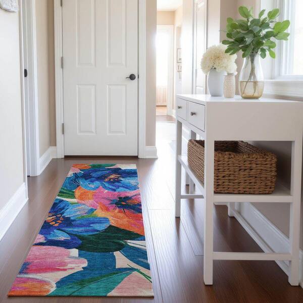 Mayfield Premium Machine Washable Abstract AMF1487 Navy 2 ft. 3 in. x 7 ft. 6 in. Runner Rug