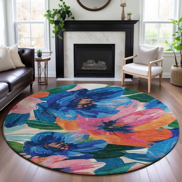 Mayfield Premium Machine Washable Abstract AMF1487 Navy 8 ft. x 8 ft. Round Rug
