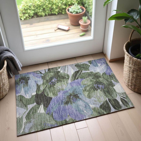 Mayfield Premium Machine Washable Abstract AMF1487 Olive 2 ft. x 3 ft. Area Rug