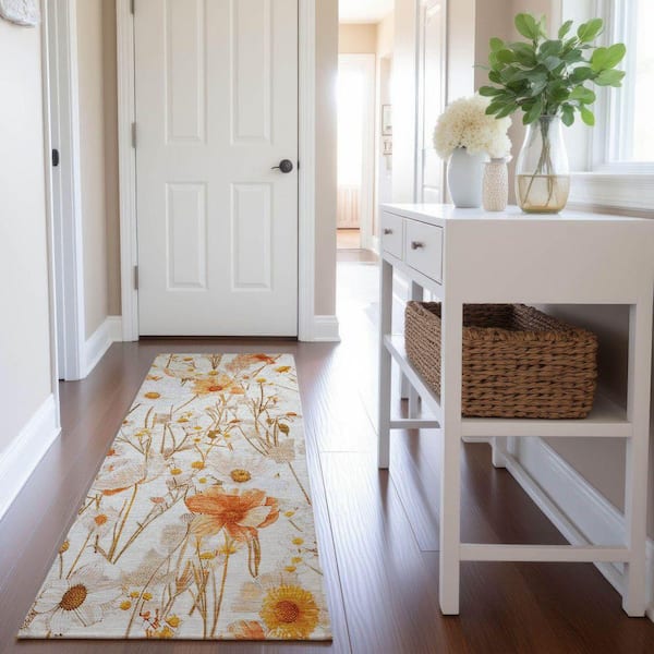 Mayfield Premium Machine Washable Abstract AMF1500 Ivory 2 ft. 3 in. x 7 ft. 6 in. Runner Rug