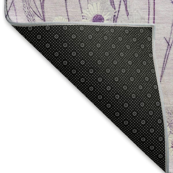 Mayfield Premium Machine Washable Abstract AMF1500 Lavender 8 ft. x 8 ft. Round Rug