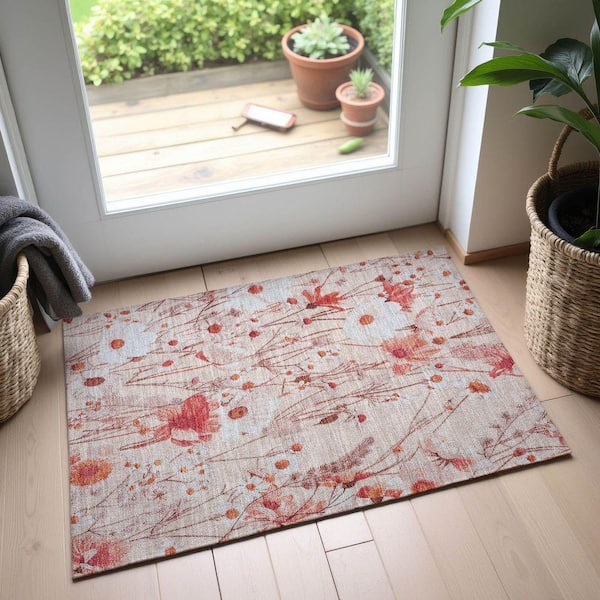 Mayfield Premium Machine Washable Abstract AMF1500 Salmon 2 ft. x 3 ft. Area Rug