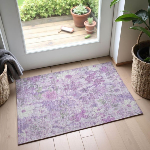 Mayfield Premium Machine Washable Abstract AMF1506 Lavender 2 ft. x 3 ft. Area Rug