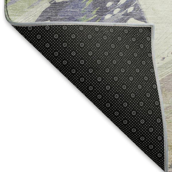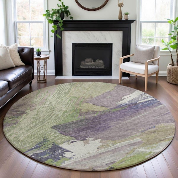 Mayfield Premium Machine Washable Abstract AMF1511 Aloe 8 ft. x 8 ft. Round Rug