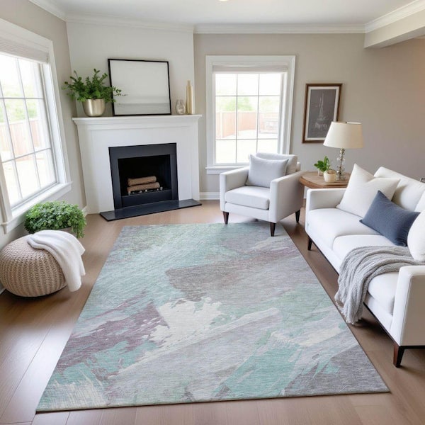 Mayfield Premium Machine Washable Abstract AMF1511 Seafoam 10 ft. x 14 ft. Area Rug