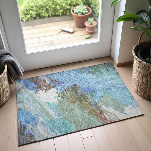 Mayfield Premium Machine Washable Abstract AMF1511 Sky 2 ft. x 3 ft. Area Rug