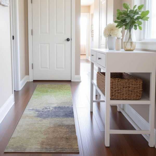Mayfield Premium Machine Washable Abstract AMF1517 Aloe 2 ft. 3 in. x 7 ft. 6 in. Runner Rug