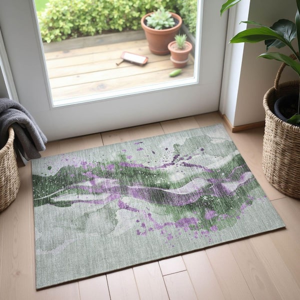 Mayfield Premium Machine Washable Abstract AMF1523 Aloe 2 ft. x 3 ft. Area Rug