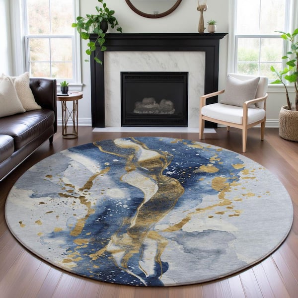 Mayfield Premium Machine Washable Abstract AMF1523 Blue 8 ft. x 8 ft. Round Rug