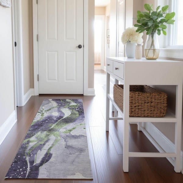 Mayfield Premium Machine Washable Abstract AMF1523 Purple 2 ft. 3 in. x 7 ft. 6 in. Runner Rug