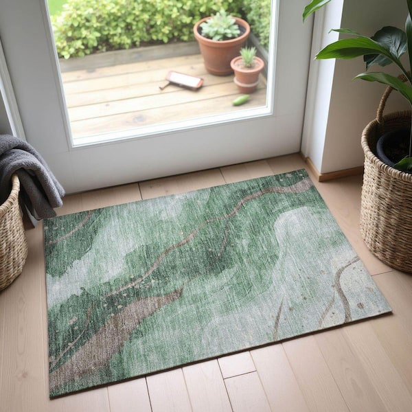 Mayfield Premium Machine Washable Abstract AMF1529 Green 2 ft. x 3 ft. Area Rug