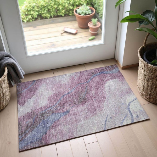 Mayfield Premium Machine Washable Abstract AMF1529 Mauve 2 ft. x 3 ft. Area Rug
