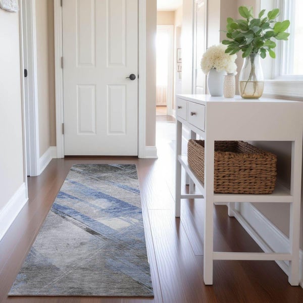 Mayfield Premium Machine Washable Abstract AMF1535 Sky 2 ft. 3 in. x 7 ft. 6 in. Runner Rug
