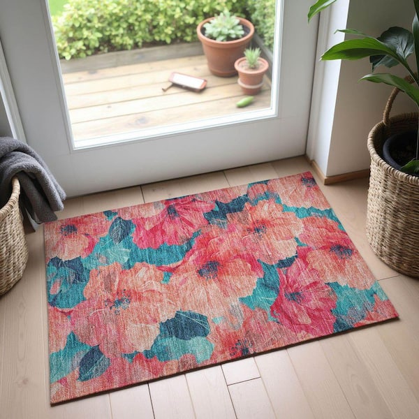 Mayfield Premium Machine Washable Abstract AMF1542 Salmon 2 ft. x 3 ft. Area Rug