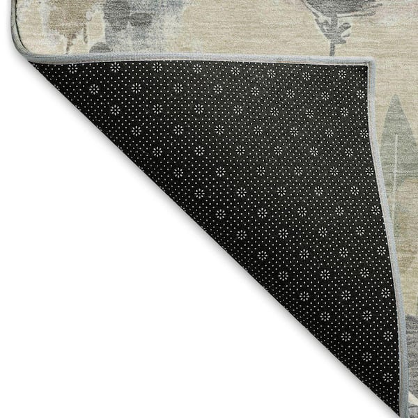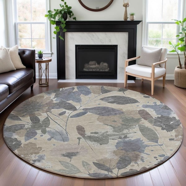 Mayfield Premium Machine Washable Abstract AMF1549 Beige 8 ft. x 8 ft. Round Rug