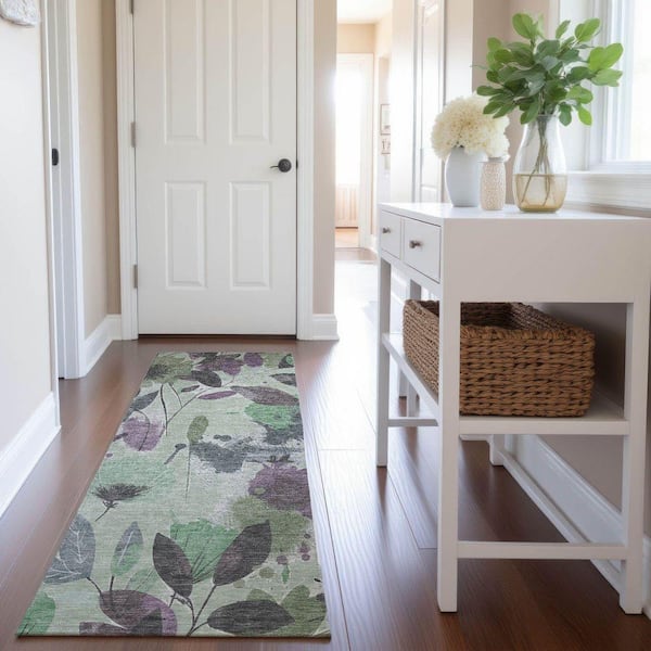 Mayfield Premium Machine Washable Abstract AMF1549 Sage 2 ft. 3 in. x 7 ft. 6 in. Runner Rug