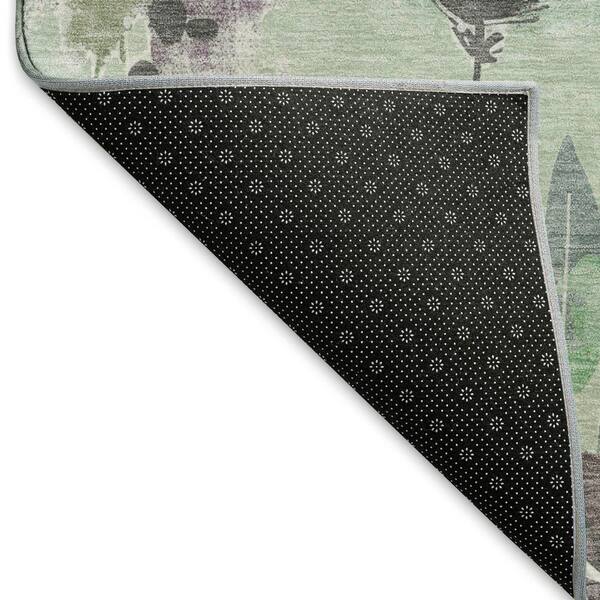 Mayfield Premium Machine Washable Abstract AMF1549 Sage 8 ft. x 8 ft. Round Rug