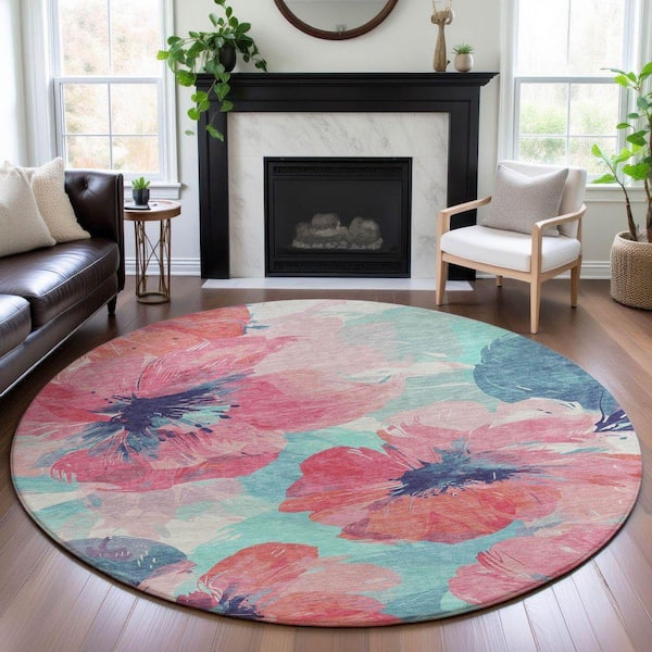 Mayfield Premium Machine Washable Abstract AMF1554 Pink 8 ft. x 8 ft. Round Rug