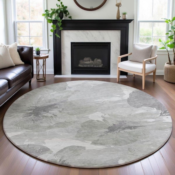 Mayfield Premium Machine Washable Abstract AMF1554 Putty 8 ft. x 8 ft. Round Rug