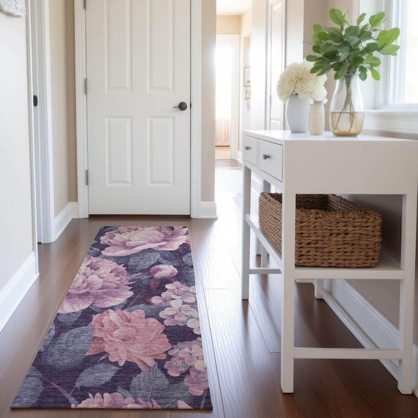 Mayfield Premium Machine Washable Abstract AMF1561 Pink 2 ft. 3 in. x 7 ft. 6 in. Runner Rug
